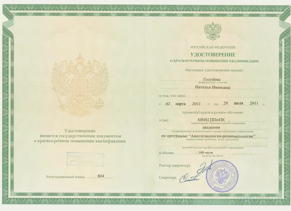 • Должность: Врач реанимолог высшей категории